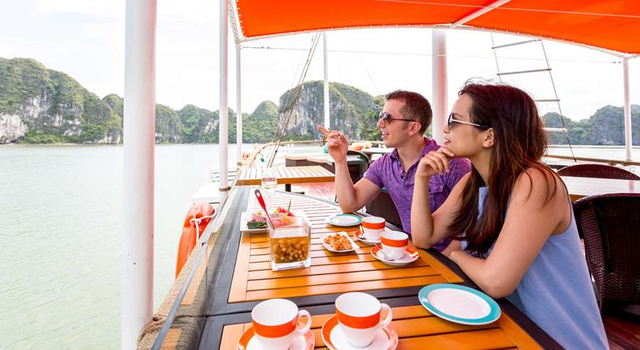 Arrive at Dao Tung Lam Bay, drop anchor and relax for 45 minutes while lunch is served.